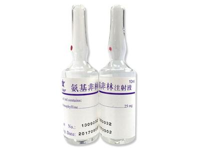 Bronchodilator: IV: 250~500mg/6hr. Acute attack: Loading dose: IV 6 mg/kg , the infusion time must be more than 20 minutes. Maintenance dose: (1) Elderly or patients with pulmonary heart disease: IV 0.6mg/kg for 12 hours, and then 0.3mg/kg/hr. (2) Non-smoking healthy adults: IV 0.7mg/kg for 12 hours, and then 0.5mg/kg/hr. (3) congestive heart failure or liver failure: IV 0.5mg/kg for 12 hours, and then 0.1-0.2mg/kg/hr. (4) Young smoking adults: 1 mg/kg for 12 hours, and then 0.8 mg /kg /hr. Cardiac stimulant: IV 0.5mg, administered slowly.