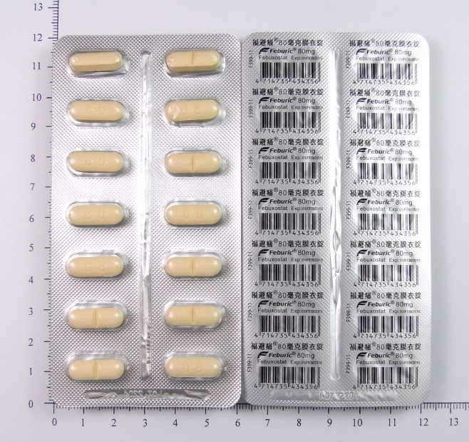Orally, start at 40mg once daily; may be increased to 80 mg once daily if serum uric acid levels of less than 6 mg/dL are not achieved after 2 weeks. Administer with or without meals or antacids.