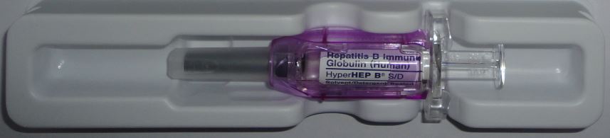 2.HepaGam B(R), Nabi-HB(R) (perinatal transmission prophylaxis in infants born to HBsAg-positive mothers) 0.5 mL IM within 12 hours of birth plus appropriate hepatitis B vaccine series [3][5]; for infant born to mothers not screened for HBsAg, if mother is found to be HBsAg-positive, give 0.5 mL IM as soon as possible and within 1 week after birth plus appropriate hepatitis B vaccine series.