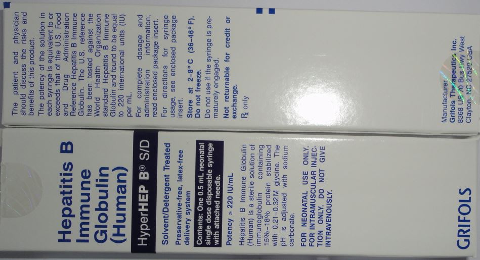 HyperHEP B(R) (perinatal transmission prophylaxis in infants born to HBeAg- or HBsAg-positive mothers) 0.5 mL IM within 12 hours of birth plus appropriate hepatitis B vaccine series; if hepatitis B vaccine is delayed for as long as 3 months, then give hepatitis B immune globulin and repeat at 3 months; if hepatitis B vaccine is refused, then give hepatitis B immune globulin and repeat at 3 and 6 months.