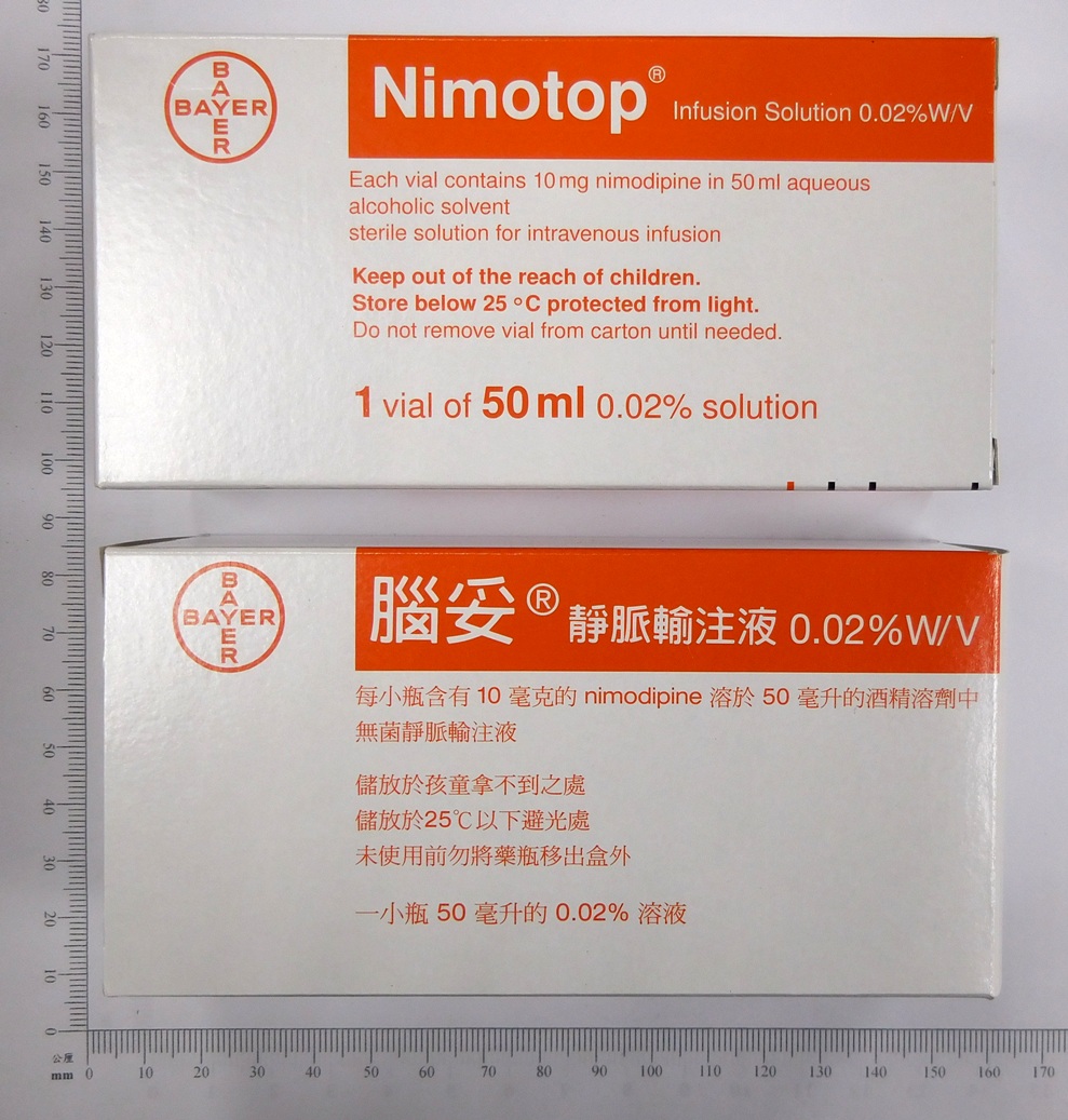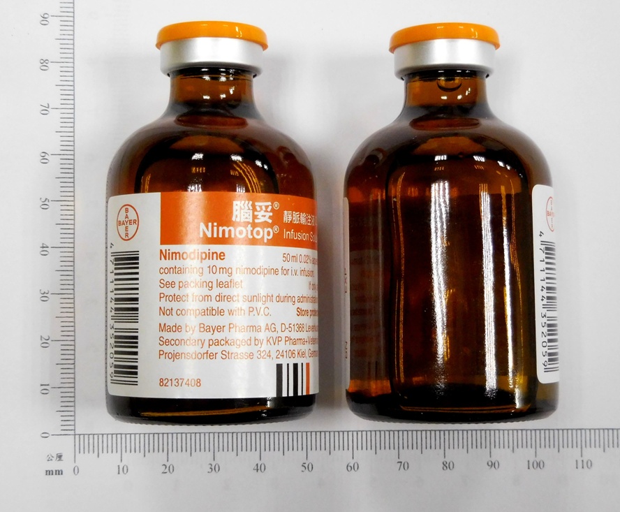 Nimodipine is sensitive to light. Nimodipine solution can bind to polyvinyl chloride (PVC) tubing; non-PVC infusion equipment should be used. Nimodipine solution must not be added to an infusion bag or bottle, or be mixed with other drugs.