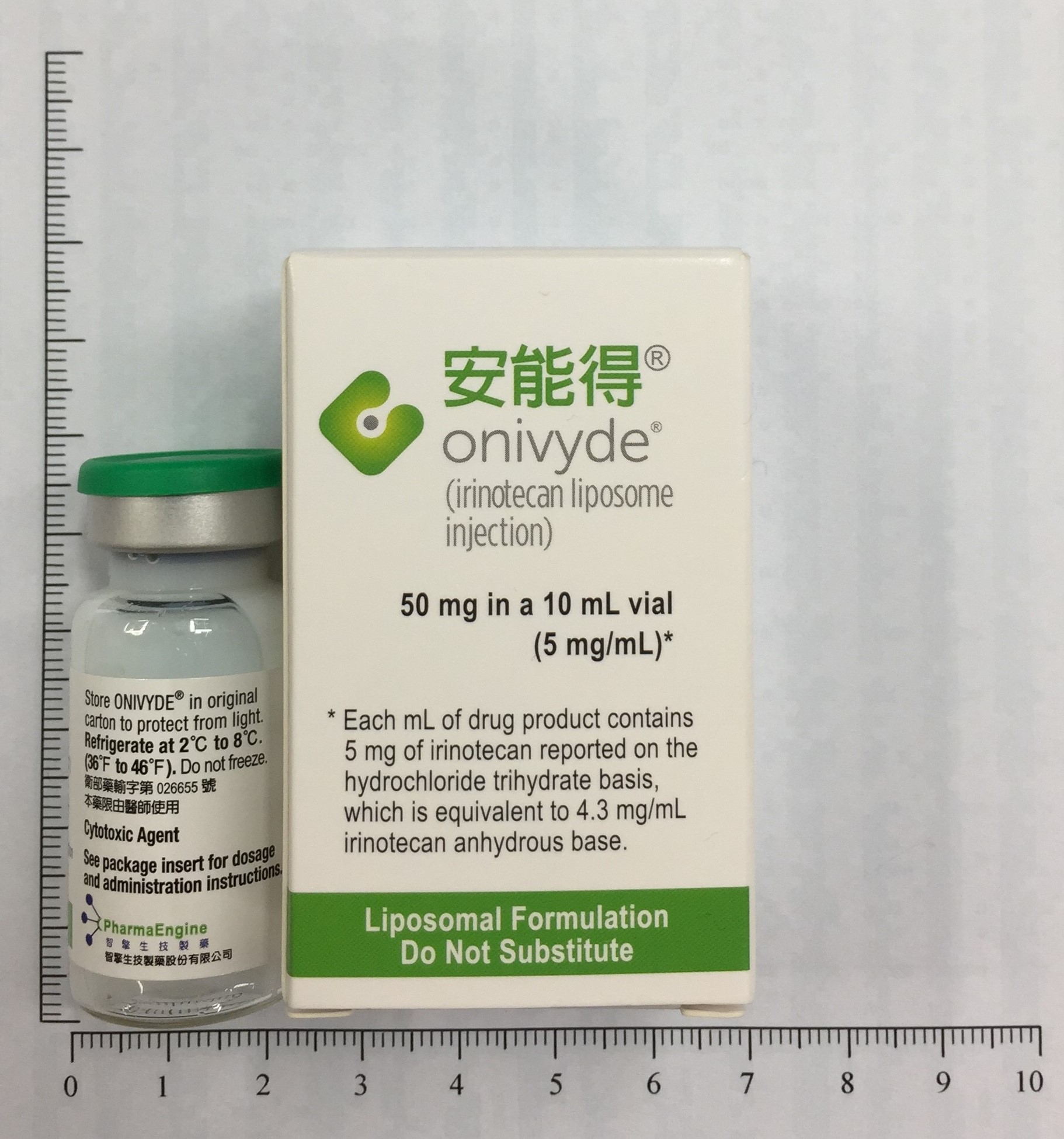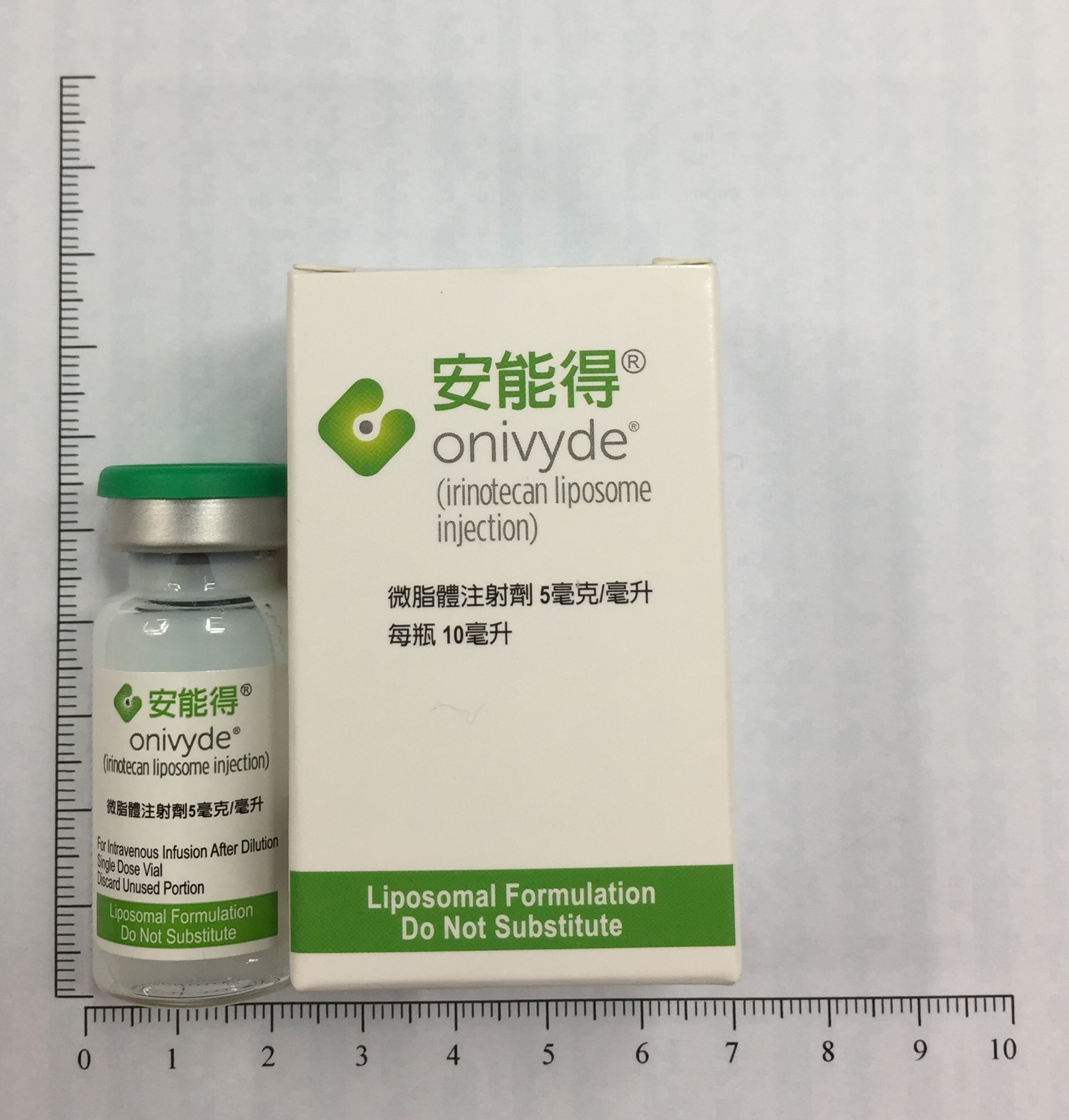 與5-fuorouracil 和leucovorin併用,治療曾接受過gemcitabine的轉移性胰腺癌成人病人。
